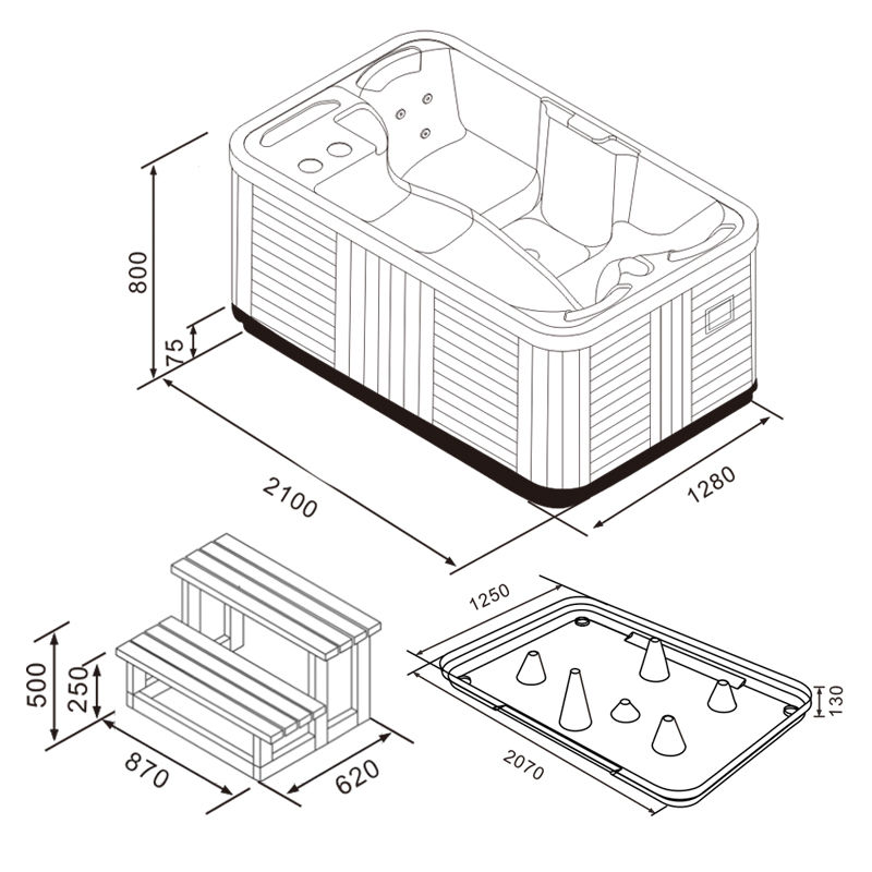 1.Spa Shell 1pc  15.Seat capacity 2 persons