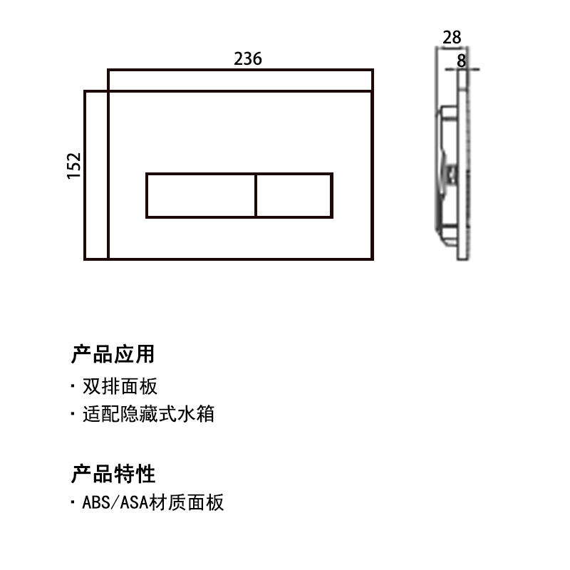 用途:挂壁式马桶长方形暗水箱冲水按钮